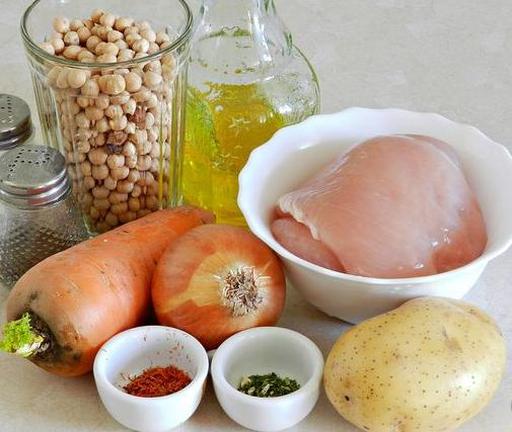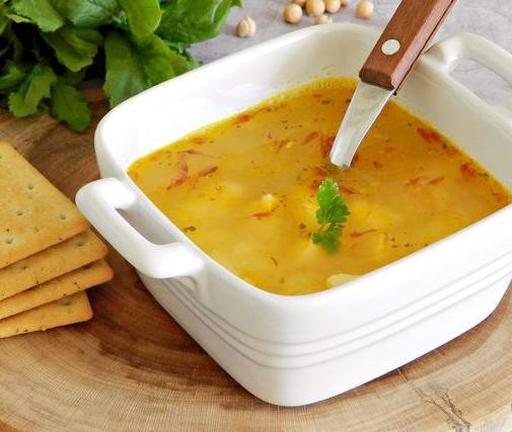 Цей густий і ситний суп з куркою та нутом відрізняється більш легкою текстурою, ніж аналогічні страви зі звичайного гороху, при цьому залишаючись дуже смачним та поживним. Для надання супу ніжного аромату та привабливого золотистого кольору використовується доступний імеретинський шафран.