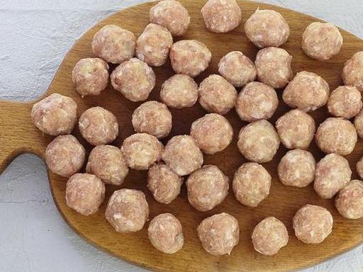 Дістаньте фарш із холодильника. Сформуйте маленькі фрикадельки, за необхідності злегка змочуючи руки водою.