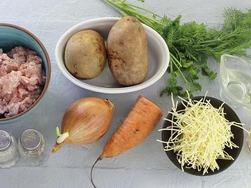 Підготуйте всі інгредієнти. Для фрикадельок використовуйте свинячий фарш або інший на ваш розсуд. Вермішель виберіть за бажанням.