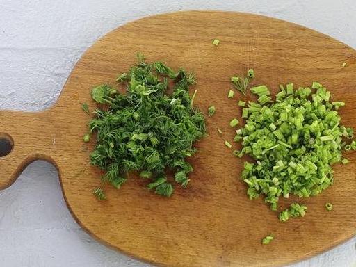 Промийте зелень. Обірвіть листочки та дрібно наріжте. Стебла зелені також дрібно наріжте та використовуйте для супу.