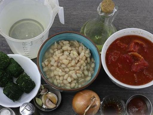 Консервована квасоля робить суп без м'яса та картоплі ситнішим, і разом з консервованими помідорами дозволяє приготувати обід дуже швидко. Шпинат додає супу корисності. Справжня знахідка для любителів простих та смачних рецептів.