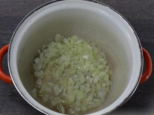 У каструлі розігрійте олію на середньому вогні. Додайте цибулю і готуйте 4-5 хвилин на вогні нижче середнього, помішуючи.