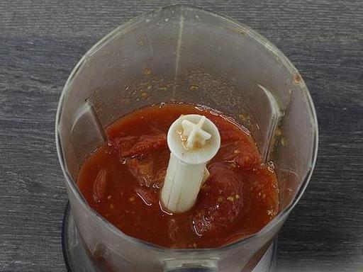 Подрібніть помідори у власному соку в блендері разом із соком.