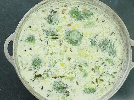 Вершковий суп з броколі та кукурудзою готовий.
